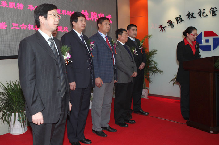 2010年12月29日,淄博齊魯股權(quán)托管交易中心舉行隆重的揭牌儀式,同時(shí)我公司也在齊魯股權(quán)托管交易中心正式開鑼運(yùn)營,“惠工電氣”做為齊魯股權(quán)托管交易中心首批掛牌交易企業(yè),正式開盤交易。省金融辦主任李永健,淄博市委副書記、市長周清利,市委常委、副市長王頂岐,高新區(qū)管委會(huì)副主任牛圣銀等領(lǐng)導(dǎo)參加了此次掛牌儀式。